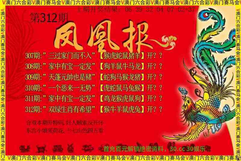 | 311期[复式连肖] 【猴龙羊】【猪狗兔】【羊龙蛇】【蛇兔狗】 开奖结果:06-39-32-04-07-02特37 |